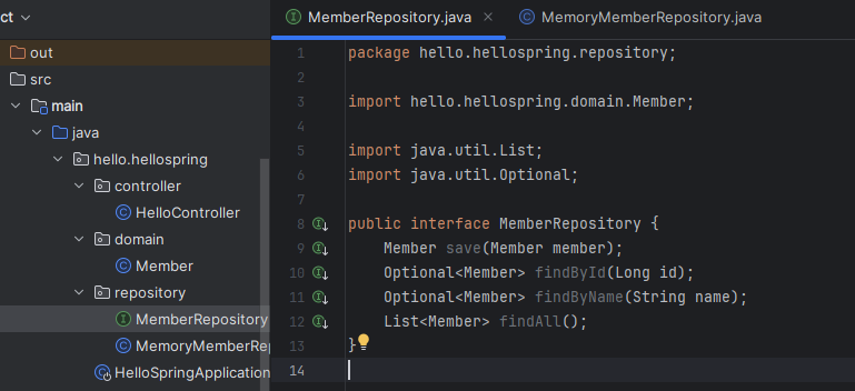 회원 리포지토리는 Main 리포지토리에 비해 좀 더 비즈니스적인(?) 용어를 사용한다.