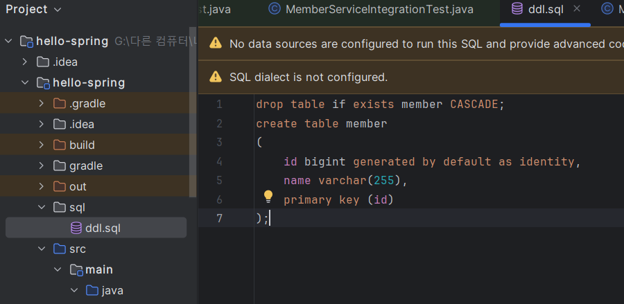 그리고 테이블 관리를 위해 프로젝트 루트에 sql/ddl.sql 파일을 생성한다.