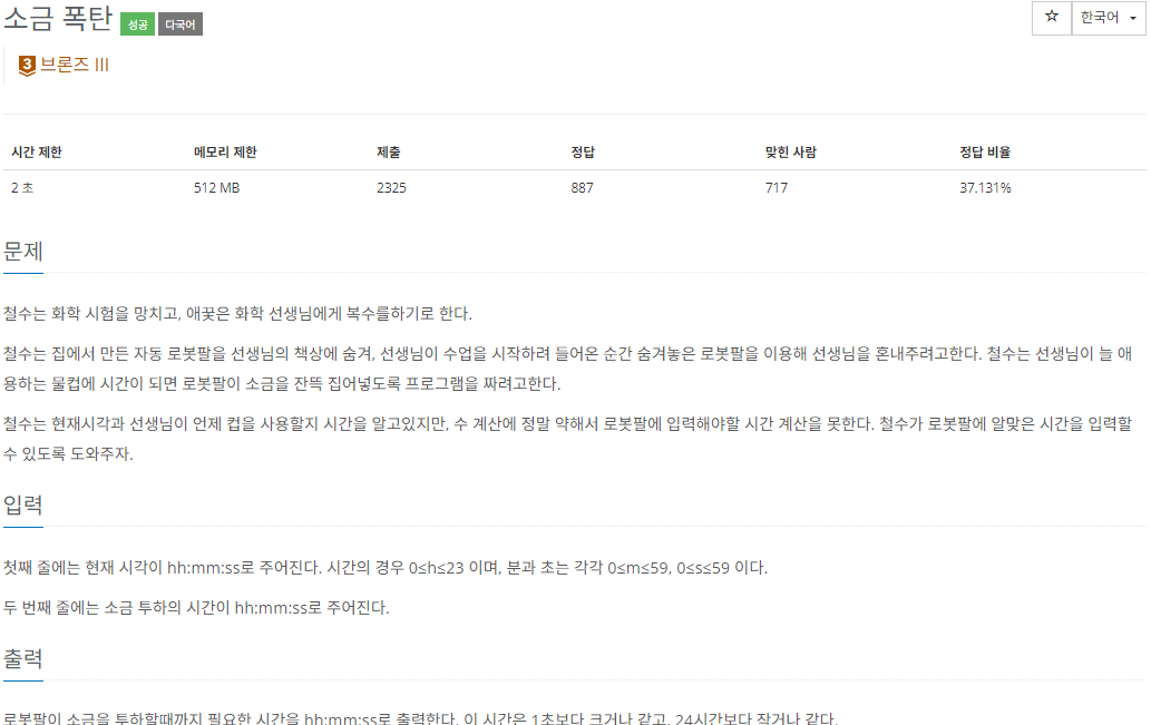 원리는 같다. 다만 String을 통으로 int로 만들지 않고 시, 분, 초를 나눠서 int로 만들었다. 예를들면 "12:34:56"이면 hh = 24, mm = 34, ss = 56 즉, 두자리 숫자로 만들고 계산했다. 자세한 내용은 코드에 주석으로 적어놓았다.